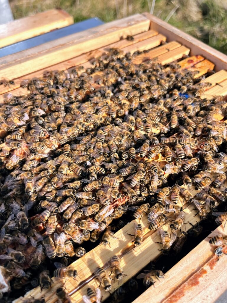 En tant qu’apiculteur, je veille à ce que chaque ruche ait au moins 15 à 20 kg de réserves avant l’hiver. Si ce n’est pas le cas, je complète avec du sirop de sucre ou du candi pour éviter la famine.
