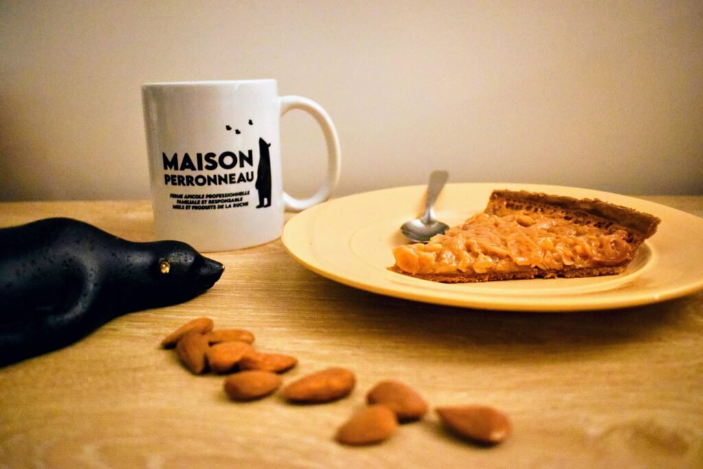 Retirez les billes de cuisson du fond de tarte, puis versez la préparation au miel dessus.